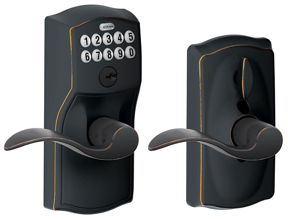 Schlage Fe595cam622acc Matte Black Camelot Keypad Entry With Flex Lock Door Lever Set With Accent Interior Lever Handlesets Com