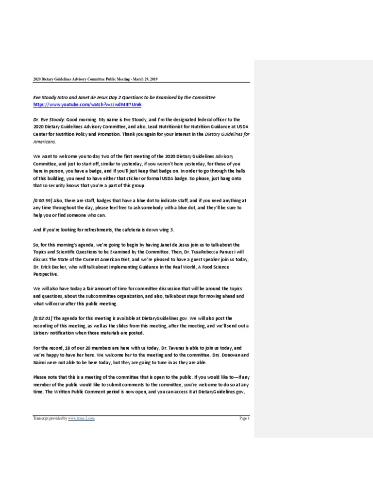 2020 Dietary Guidelines Advisory Committee Public Meeting March 29 2019 Pdf Nutrients Foods