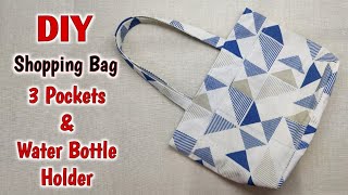 How To Sew A Shopping Bag With Water Bottle Holder Tote Bag Cutting And Stitching Diy Cloth Bag Youtube